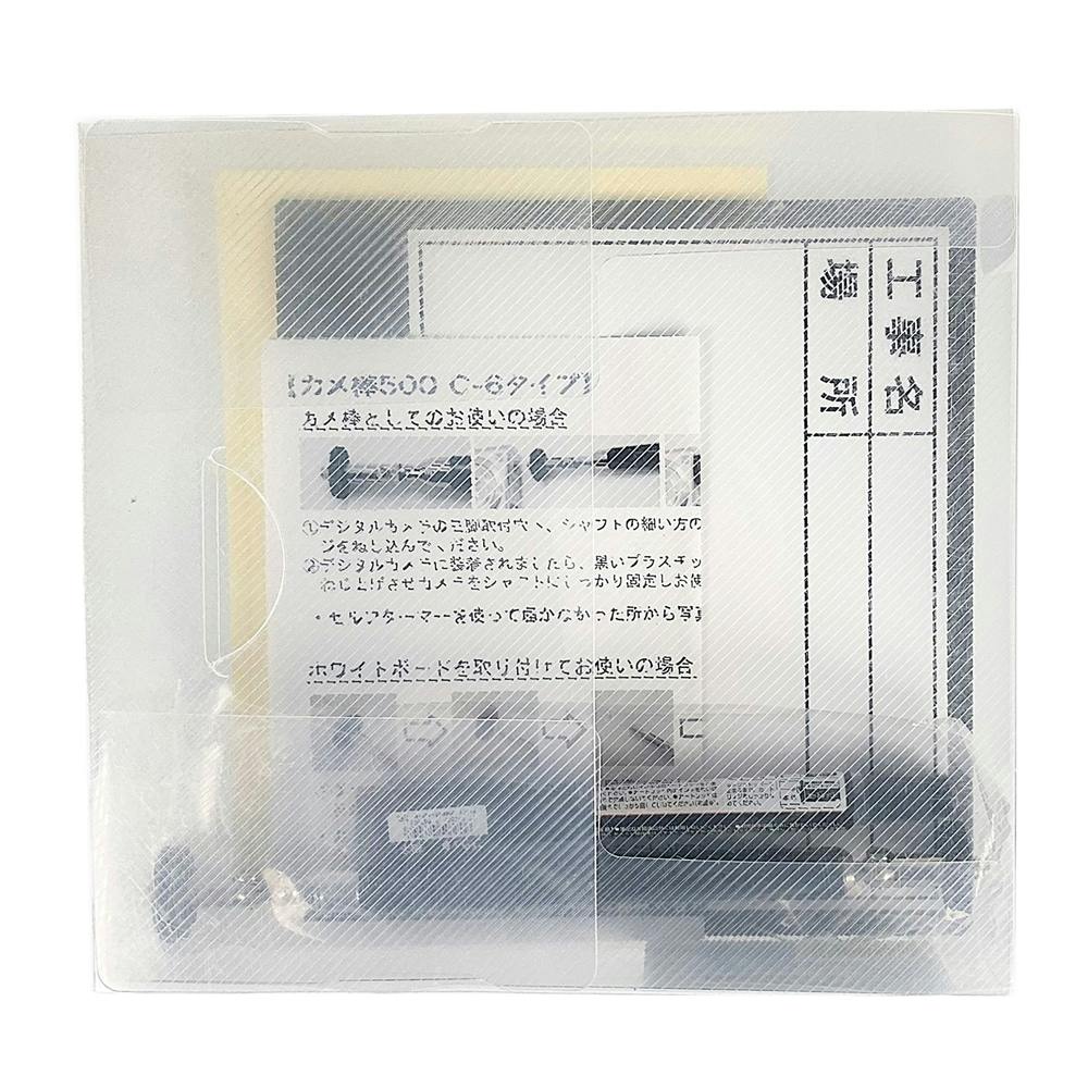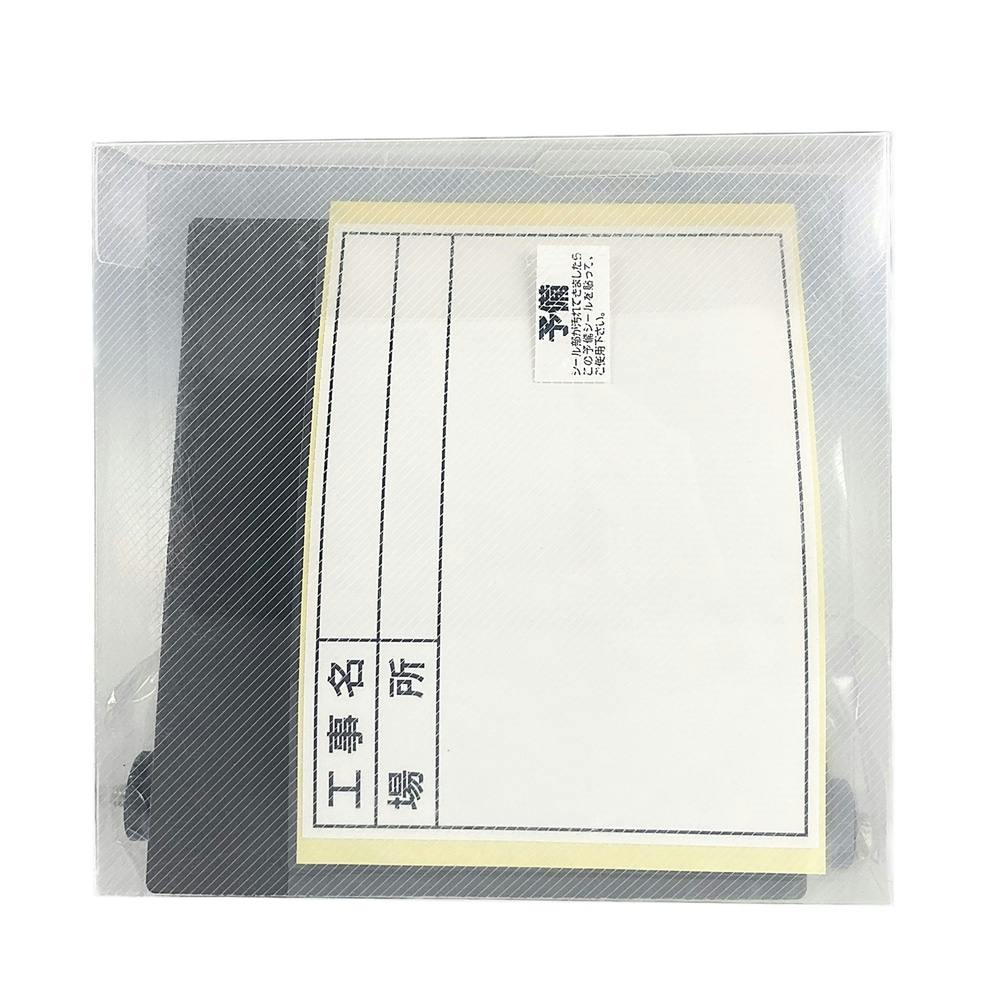 表示面はホワイト。表示項目は工事名、場所、日付。シャフト寸法は150~700mm。ボード本体からシャフトが着脱可能で、シャフトにはデジタルカメラなど装着可能です。