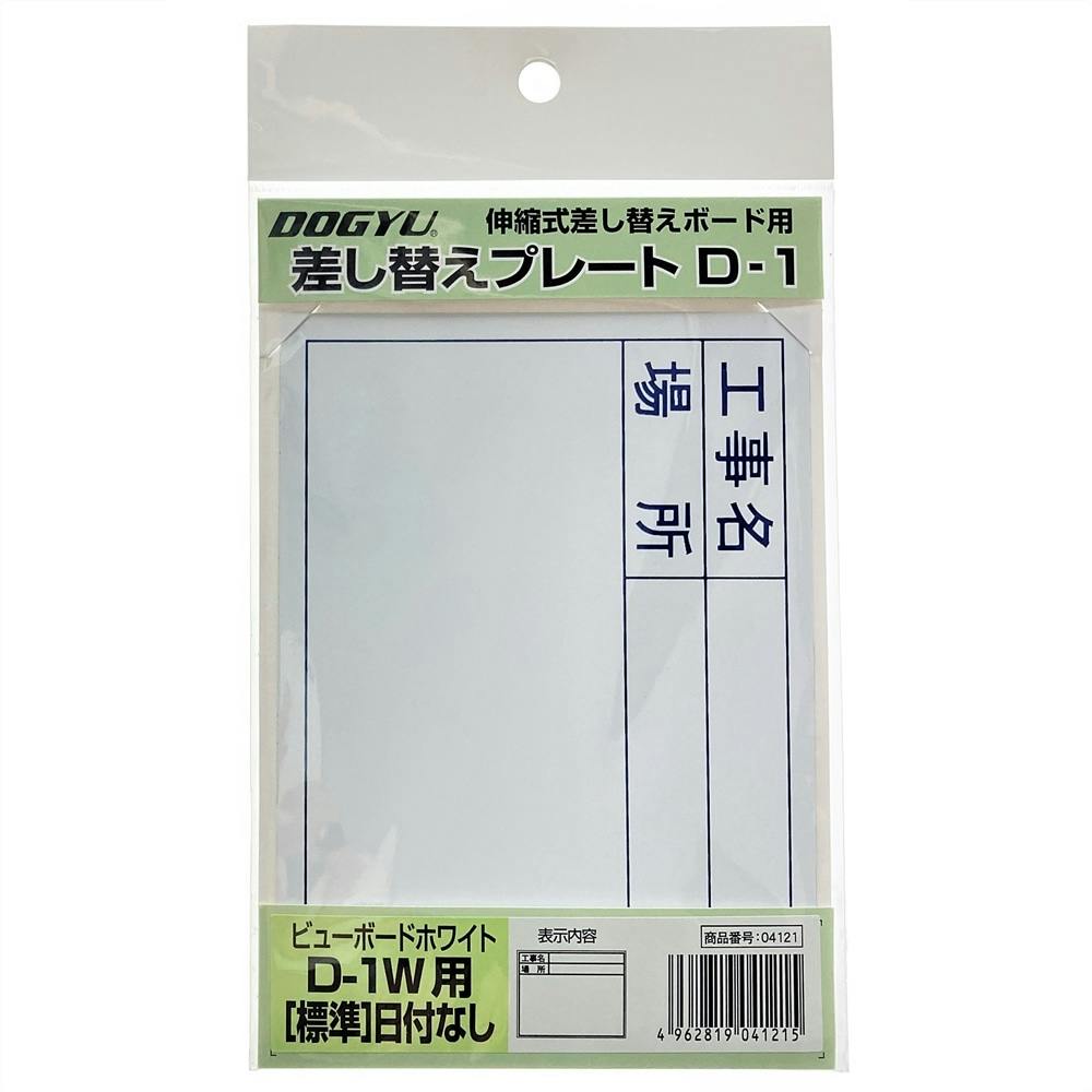 DOGYU 土牛 差し替えプレートD-1 ビューボードホワイトD-1W用 標準・日付なし 04121