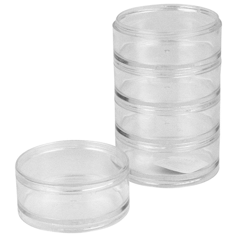 ●本体やフタがねじ式の連結タイプで小物の分類に便利な丸型タイプです。 ●段を自由に組み合わせができ、用途によって使い分けができます