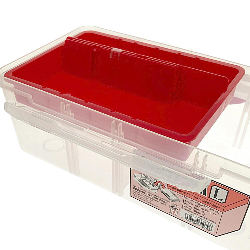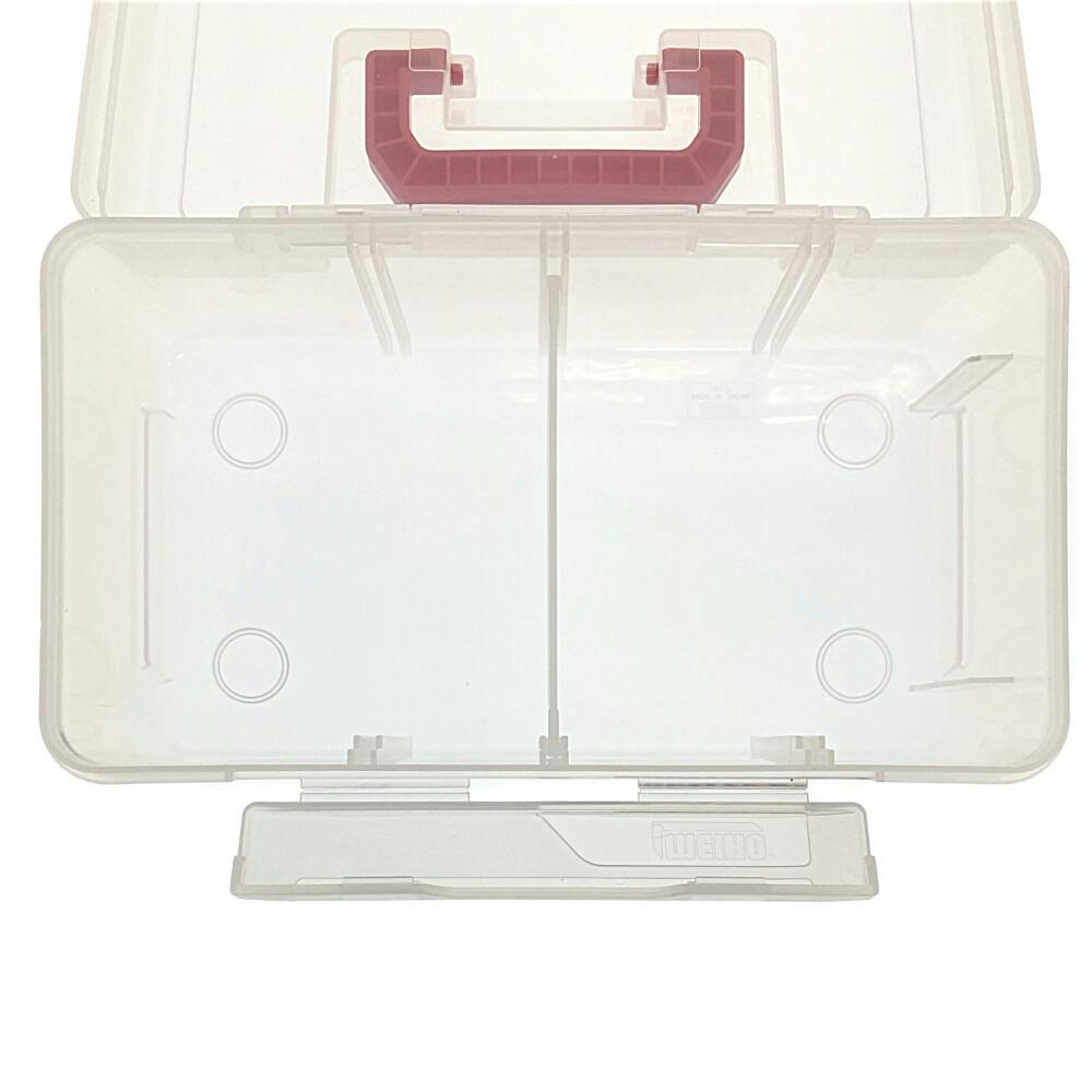●小物整理に便利なハーフトレー付きです。●中身が見やすいクリアタイプ●蓋を全開すると、ハンドルが支えになり中皿を置ける台になります。