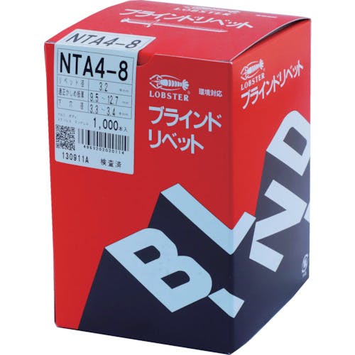 【CAINZ-DASH】ロブテックス ブラインドリベット(アルミニウム/ステンレス製) 4-8(1000本入) 箱入 NTA48【別送品】