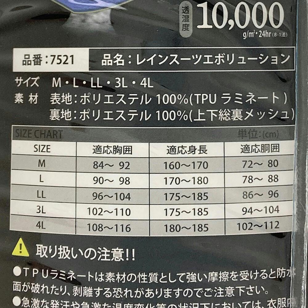 レインスーツエボリューション チャコールグレー 3L