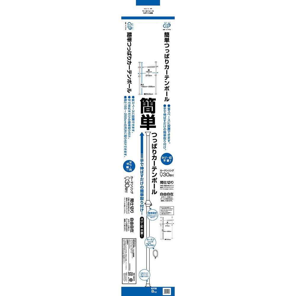 全体:幅(ポール)150~273×奥行9.8×高さ(ポール)155~255cm、上下固定基盤:直径7.5cm