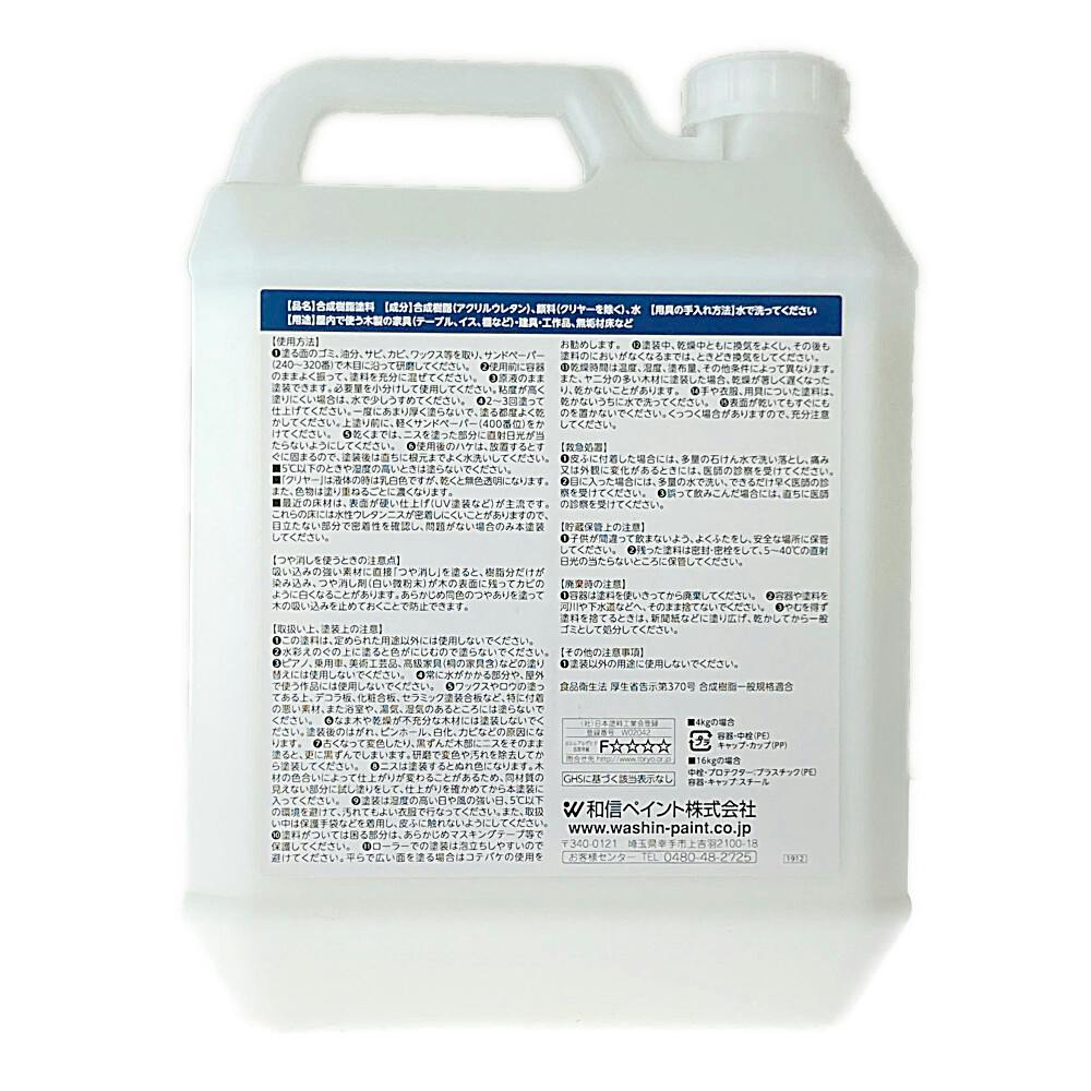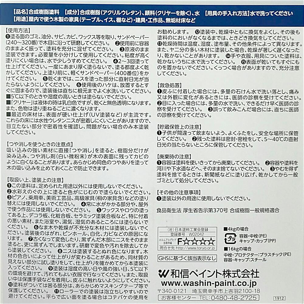水性ウレタンニス つや消し 屋内木部用 つや消しクリヤー 4kg【別送品】