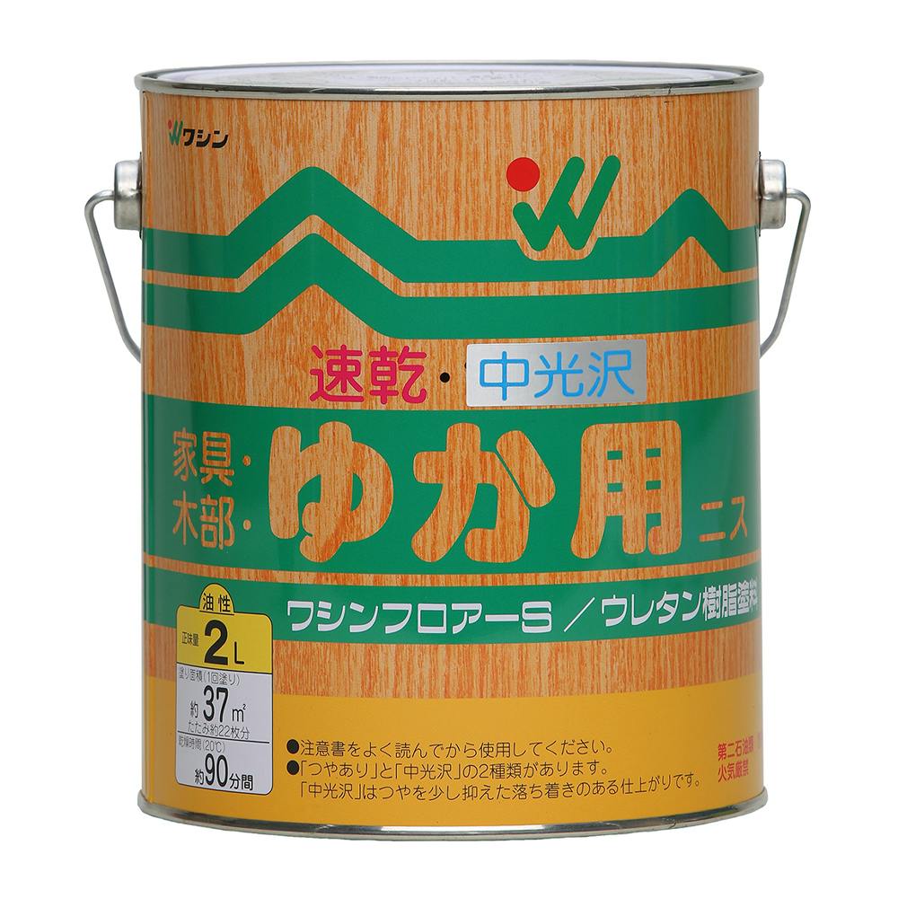 丈夫な塗膜ですべりにくい、無垢材床用のニス。油性ニスより乾燥が早い、屋内用のニス