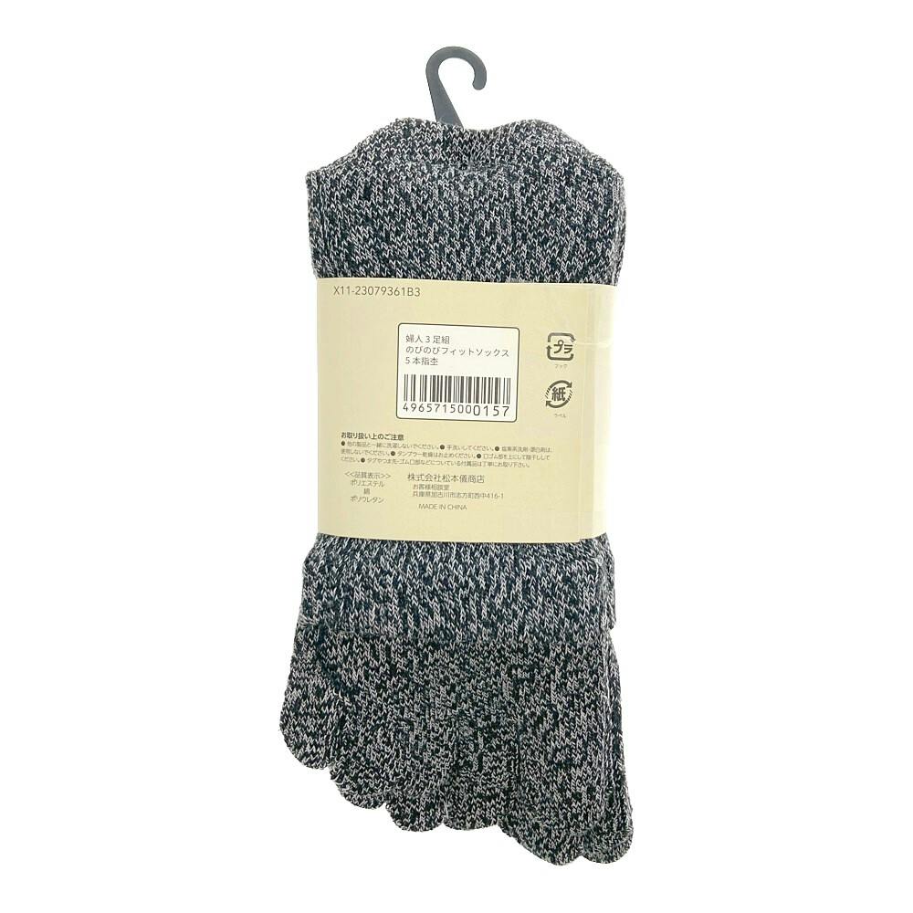 婦人靴下 3足組 のびのびフィットしっかりサポート 5本指 杢