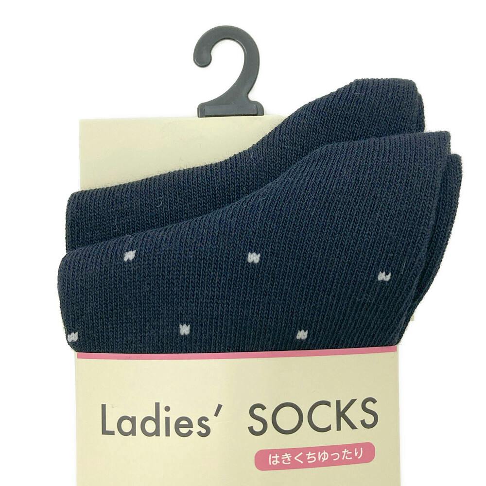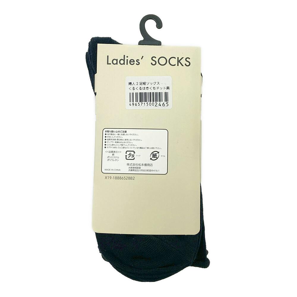 婦人靴下 ソックス くるくるはきくち ドット 黒 23-25cm 2足組