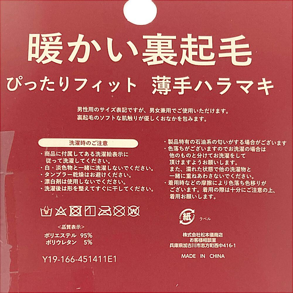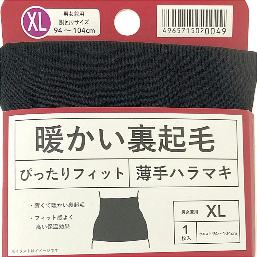 暖かい裏起毛 薄手ハラマキ 黒 XL 1枚入