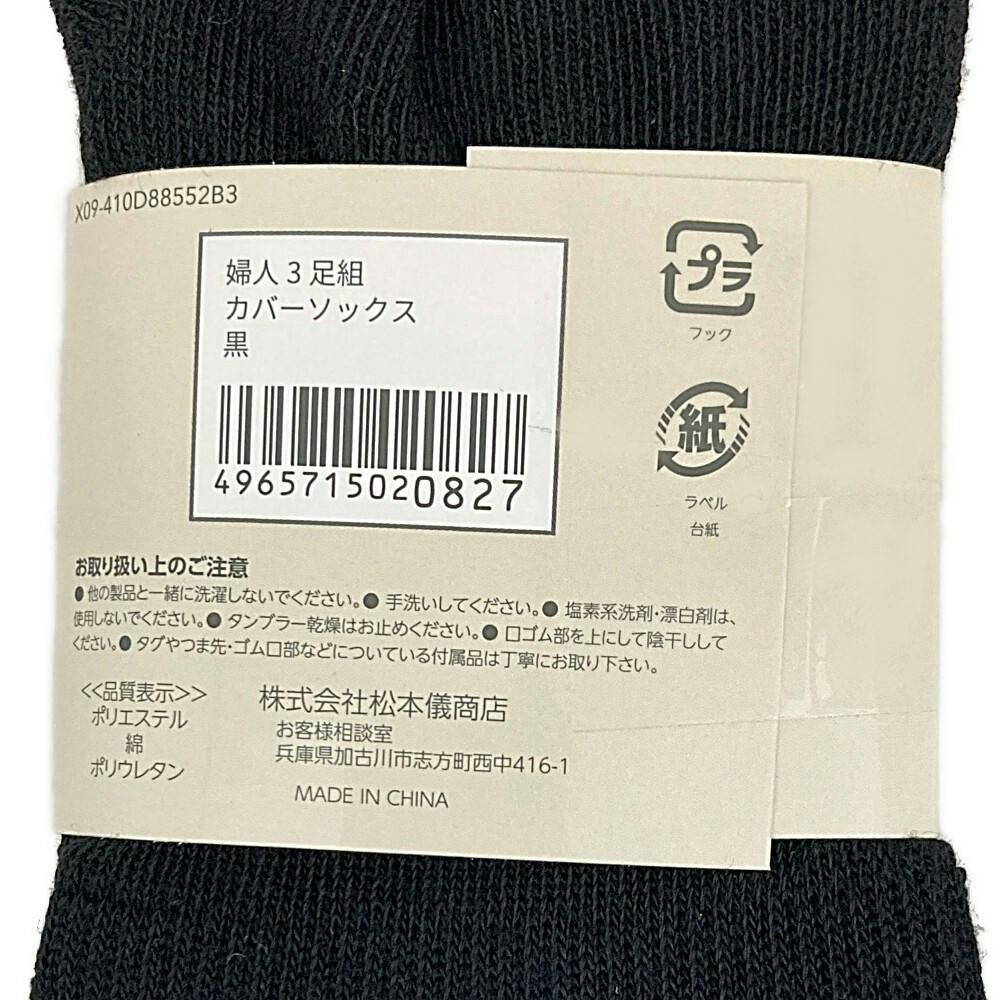 婦人ソックス カバーソックス 黒 3足組 23-25cm