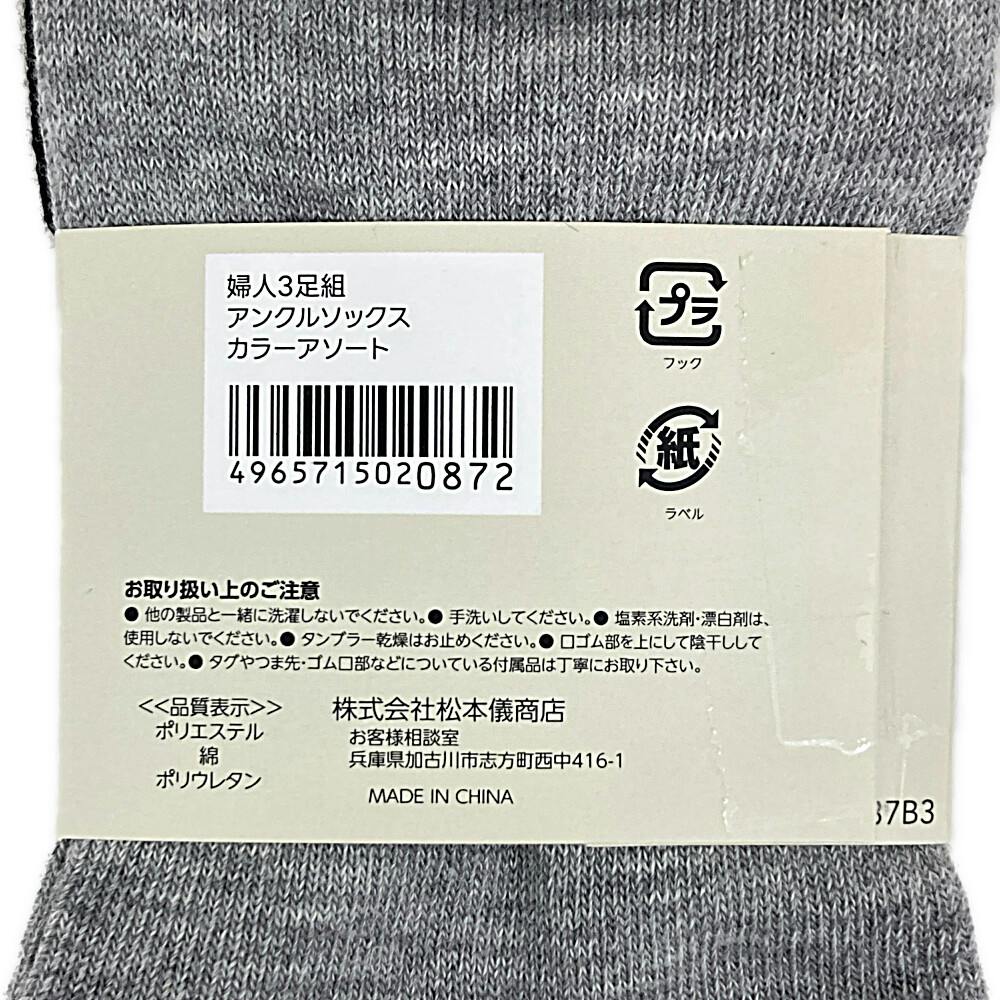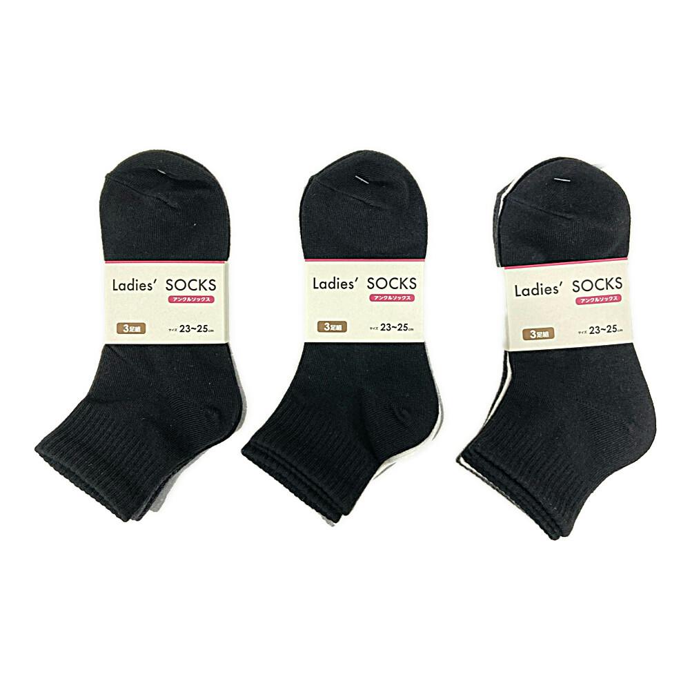 婦人ソックス アンクルソックス カラーアソート 3足組 23-25cm