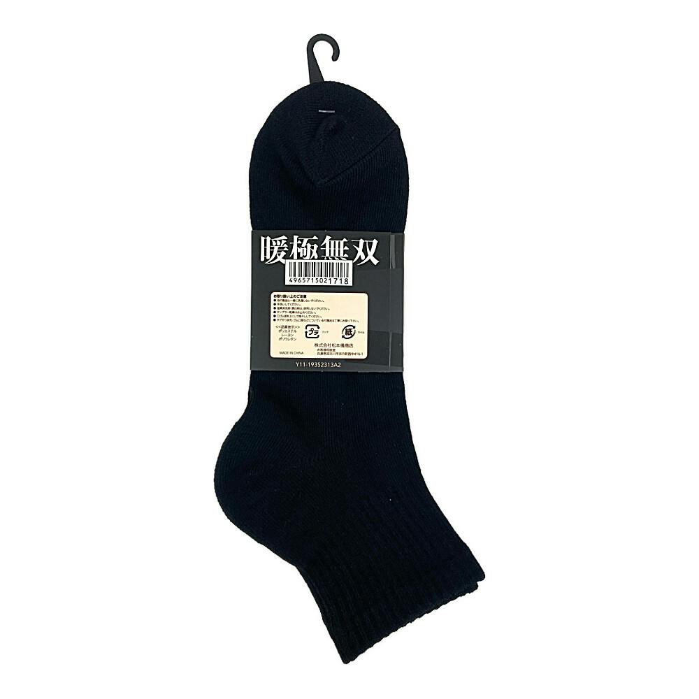 暖極無双 吸湿発熱補強ソックス ミドル丈 黒 25.0cm-27.0cm 2足組