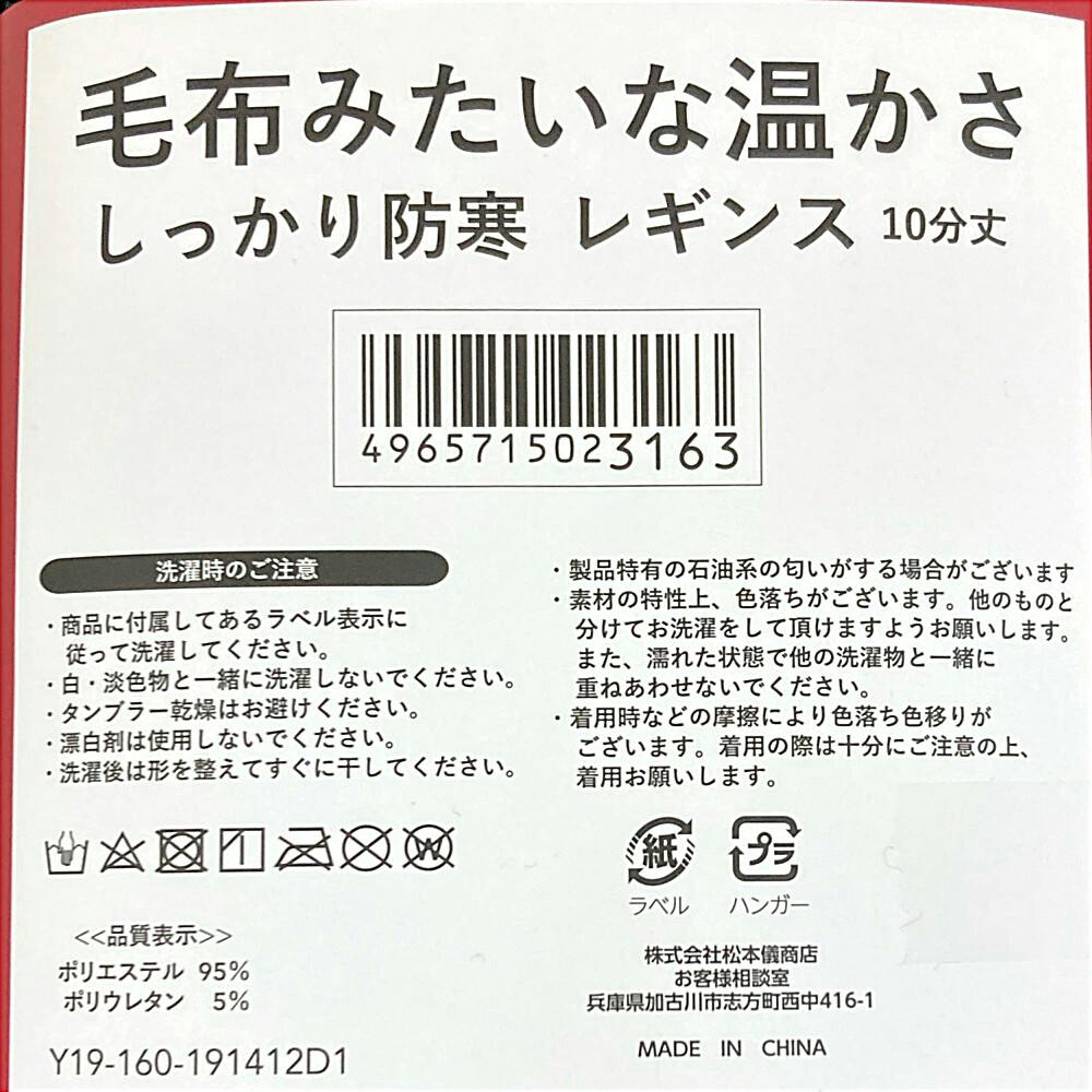 毛布みたいな温かさ しっかり防寒 レギンス 黒 10分丈 M~L