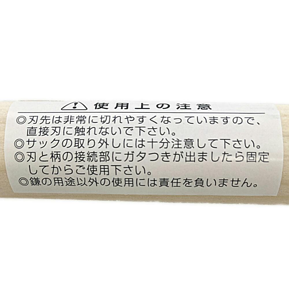 ●刃先は非常に切れやすくなっていますので、直接刃に触れないで下さい。●サックの取り外しには十分注意してください。●刃と柄の接続部にガタつきが出ましたら固定してからご使用ください。●鎌の用途以外の使用には責任を負いません。