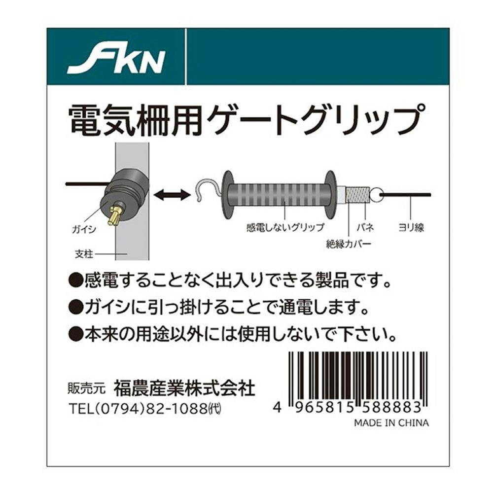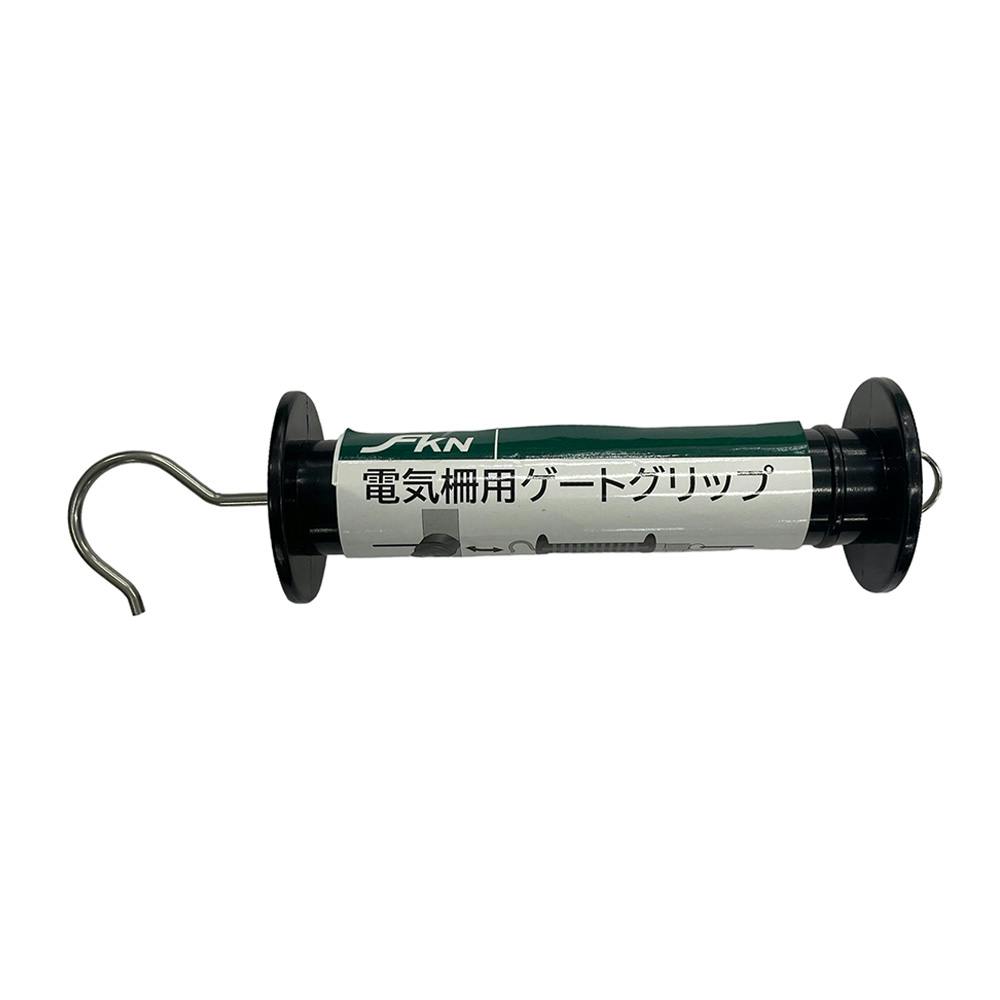 本体バネ部分に電気柵線を結んで下さい。フック部分をガイシに引っ掛けることで通電します。本体は樹脂製ですので感電することなく出入りできます。
