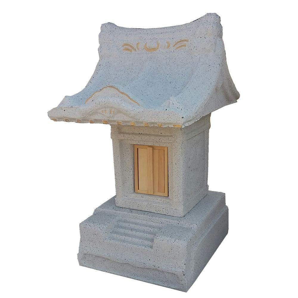 土地神様を祭る置物。土台・お社本体・屋根・扉の4点で組み合わせる作りとなります。セメントで練り上げられ本物に匹敵するほどの完成度です。