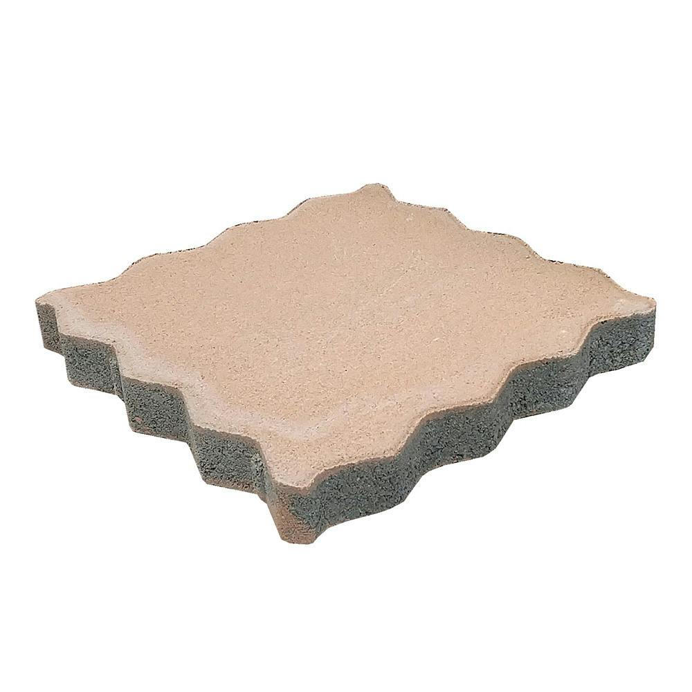 インターロッキングの波型タイプです。歩道や公園、広場から車道、駐車場、建物のアプローチなど、さまざまな場所で使われています。
