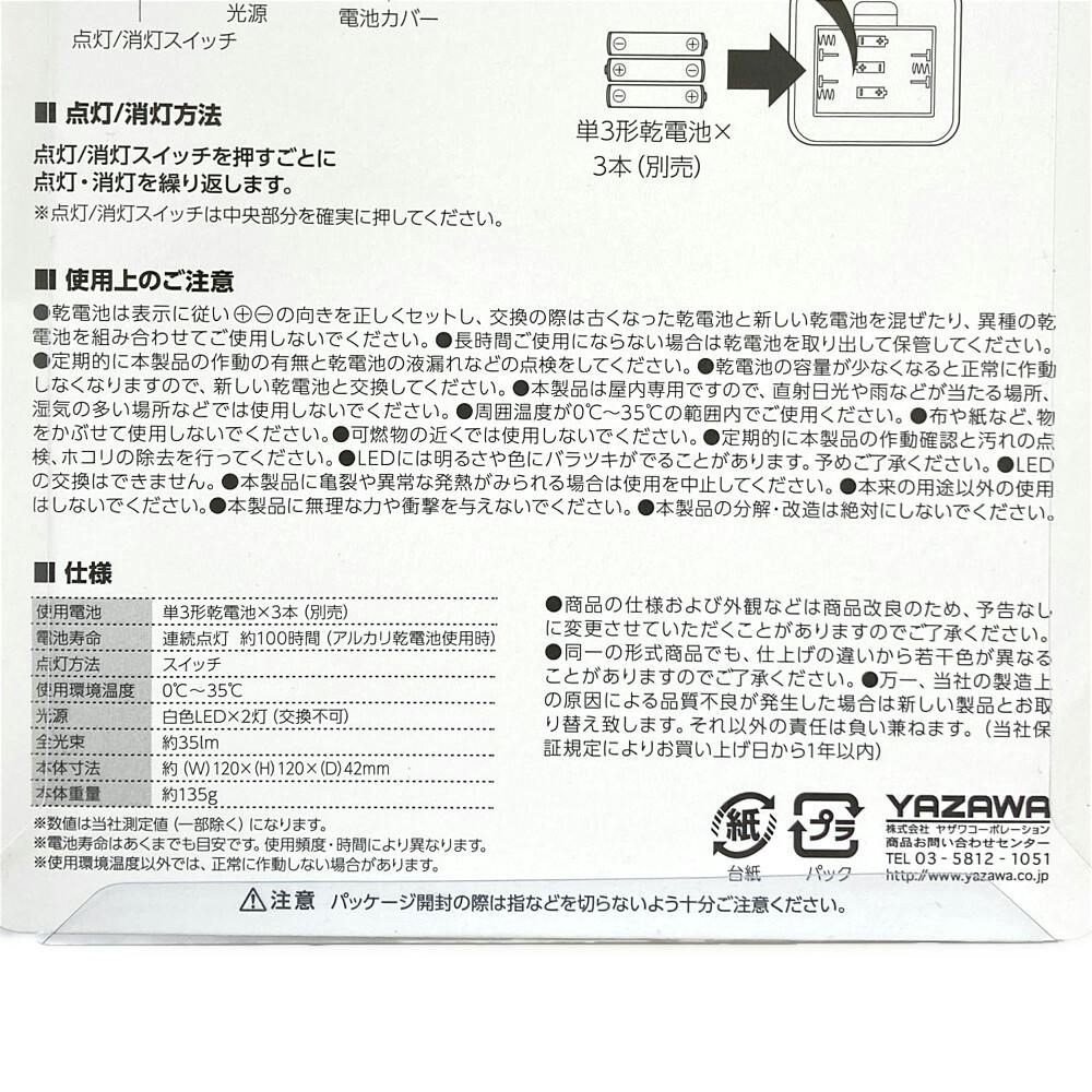 連続点灯:約100時間 ※アルカリ乾電池使用時