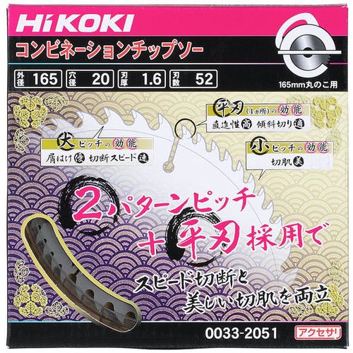 【CAINZ-DASH】工機ホールディングス コンビネーションチップソー 165mm×20 変則52枚刃 0033-2051【別送品】