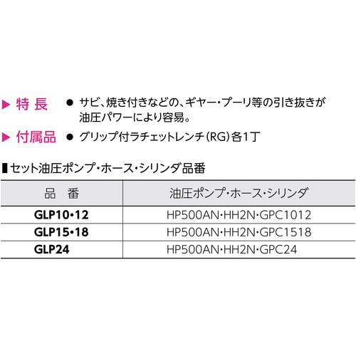 【CAINZ-DASH】スーパーツール 2本爪油圧プーラセット(油圧ポンプHP500AN・ホースHH2N・シリンダGPC1012)最大使用外径:300 GLP12【別送品】