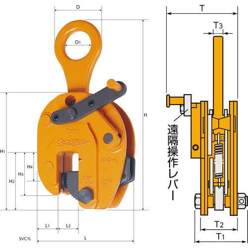• 【CAINZ-DASH】スーパーツール タテ吊クランプ(ロックレバー式)遠隔操作レバー付 基本使用荷重0.5t SVC0.5L【別送品】