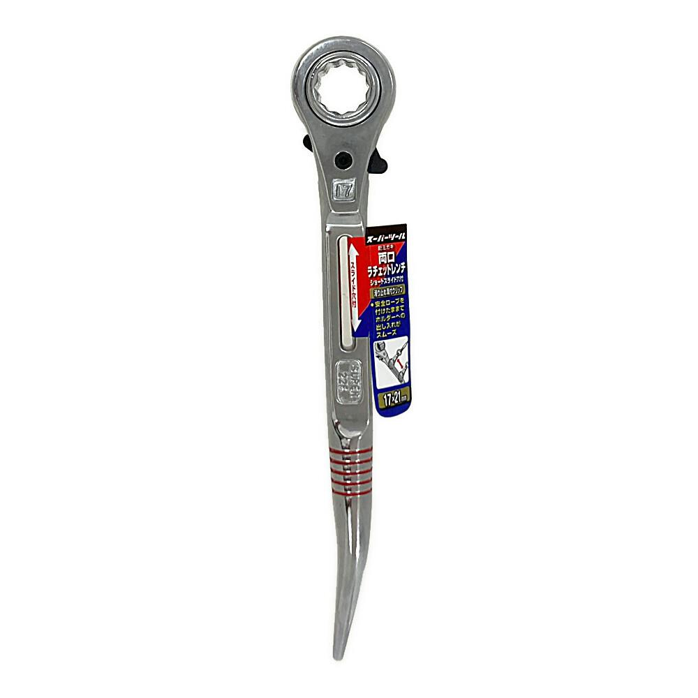 スーパーツール スーパー 総磨 曲がりしの付・両口ラチェットレンチ ショートタイプスライド穴付 呼び 17×21 SRB1721RH
