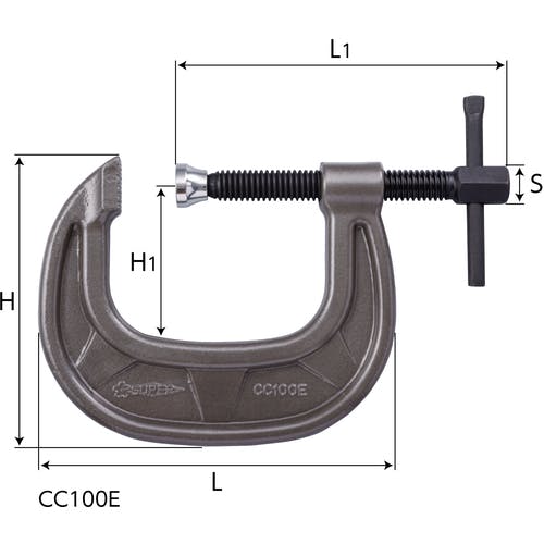 【CAINZ-DASH】スーパーツール シャコ万力(C型)強力ワイドタイプ 100mm メタリックグレー焼付塗装 CC100E【別送品】
