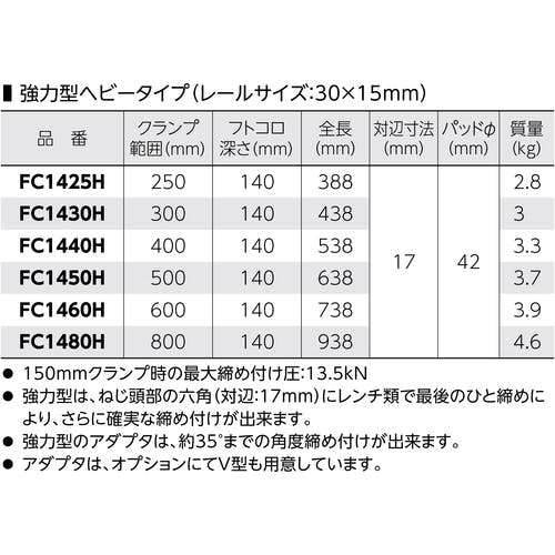 【CAINZ-DASH】スーパーツール L型クランプ(強力型ヘビータイプ)フトコロ深さ:140mm クランプ範囲:800mm FC1480H【別送品】