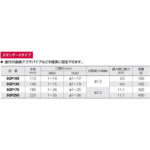 【CAINZ-DASH】スーパーツール グリッププライヤ スタンダードタイプ 全長:140mm 口開き:(角材)1~15、(丸材)φ1~19 SGP130【別送品】