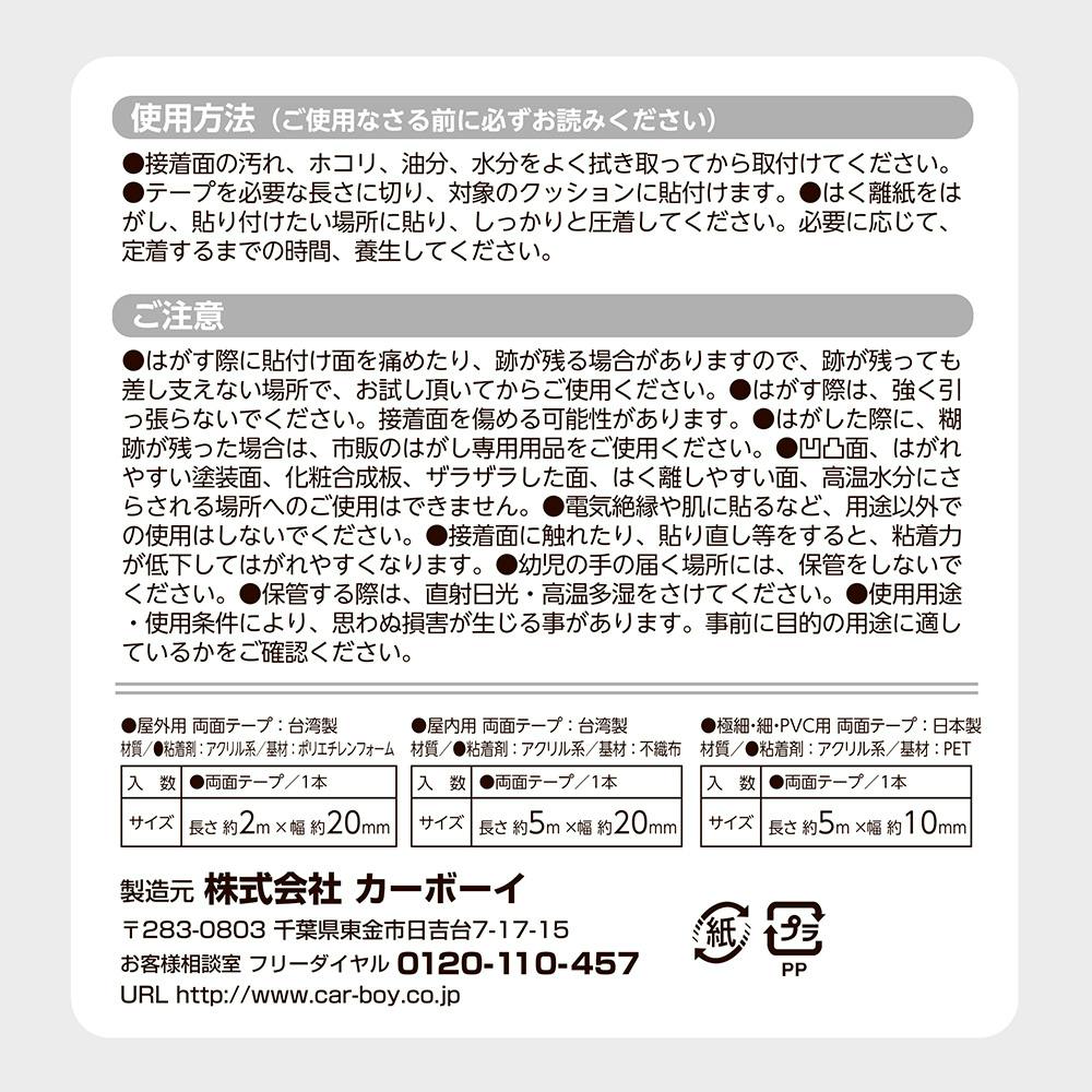 1テープを必要な長さに切り対象のクッションに貼付けます。2はく離紙をはがし、貼り付けたい場所に貼りしっかりと圧着してください。3必要に応じて、定着するまでの養生してください。