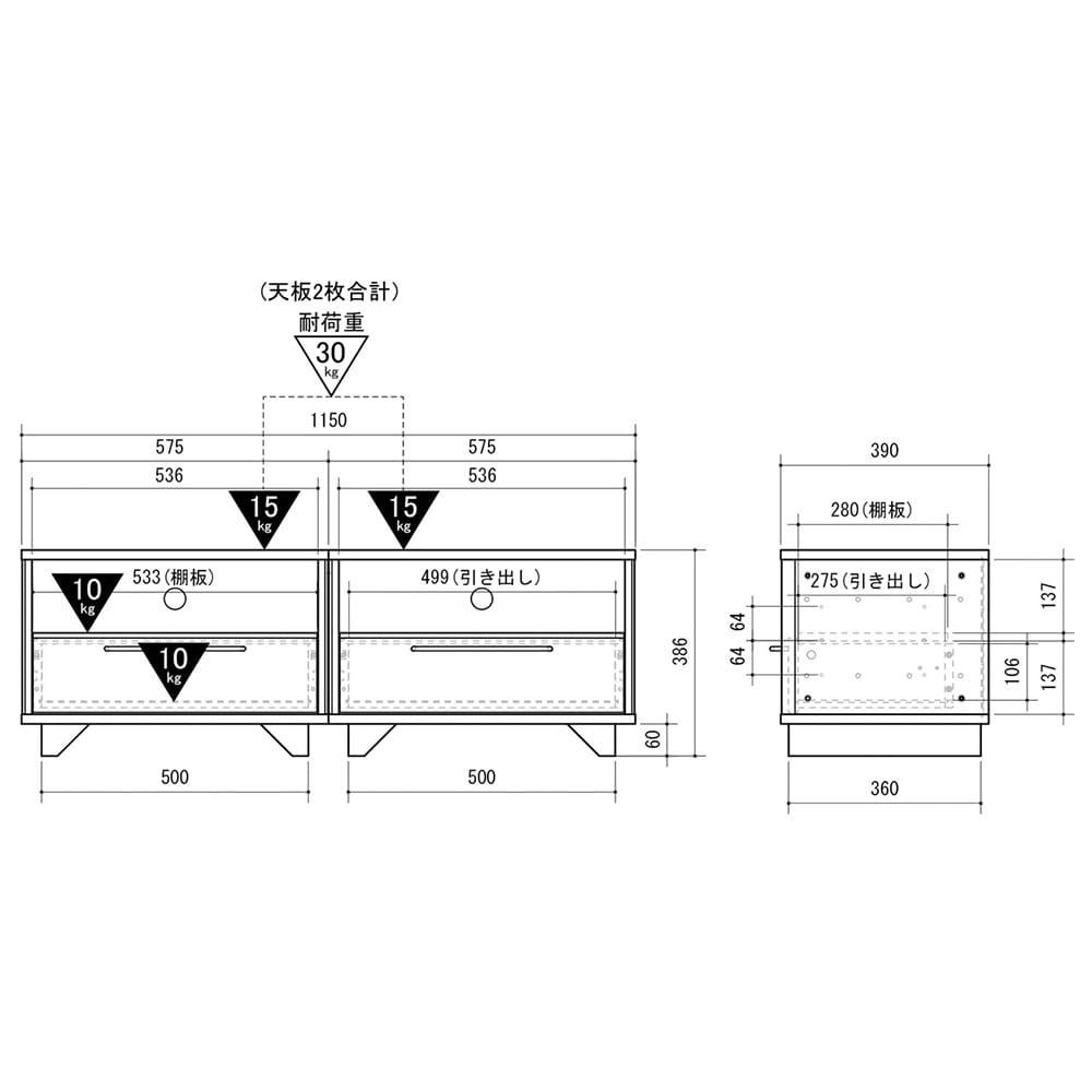 ●天板:30kg ●棚板:10kg ●引き出し:10kg
