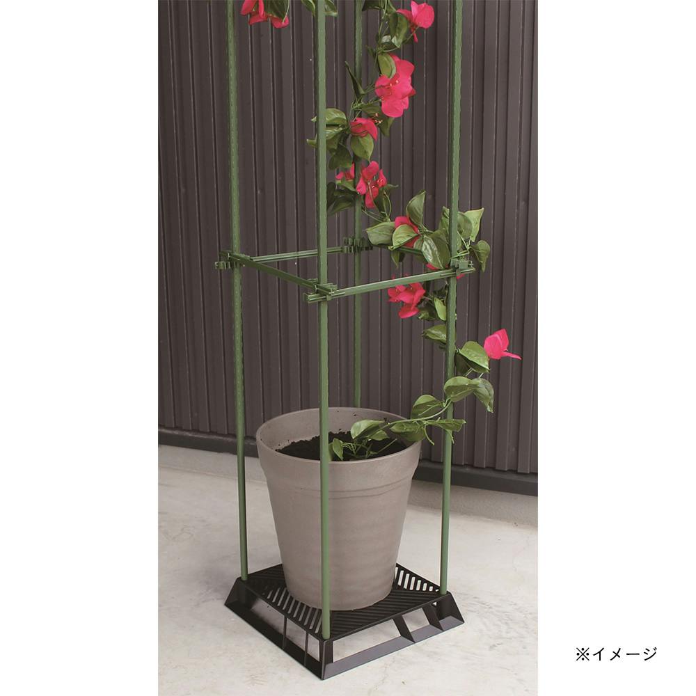 通気性、排水性に優れたメッシュタイプのスタンド。鉢を底上げし、根腐れ防止やナメクジ対策にも使用できます。四つの角に外径11mmの支柱を設置することも可能。