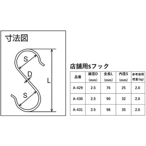 【CAINZ-DASH】ニッサチェイン ステンレスSフック スリム71mm(4個入り) A-429【別送品】