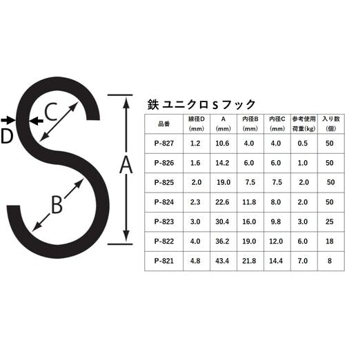 【CAINZ-DASH】ニッサチェイン ユニクロSフック 1.2×11mm(50個入り) P-827【別送品】