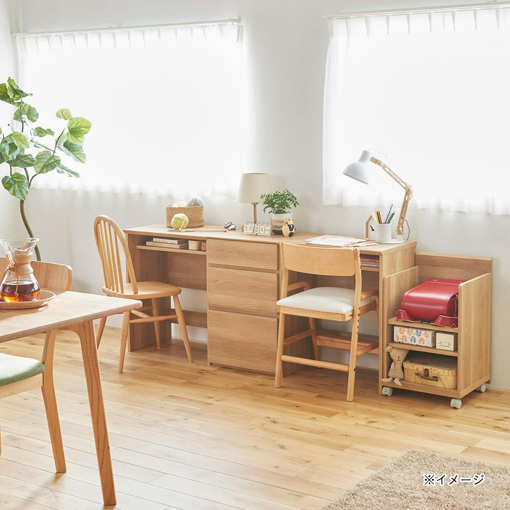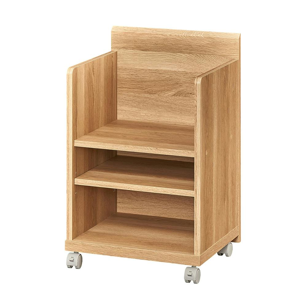 ●棚は内寸幅37.2cm、奥行35.4cm。●下の棚板は3cm間隔で高さを調節できる移動棚。●出し入れに便利なキャスター付き。●同シリーズのデスクの下に入るサイズ。使わないときはデスク下に収納できるので、見た目もすっきりして場所も取りません。
