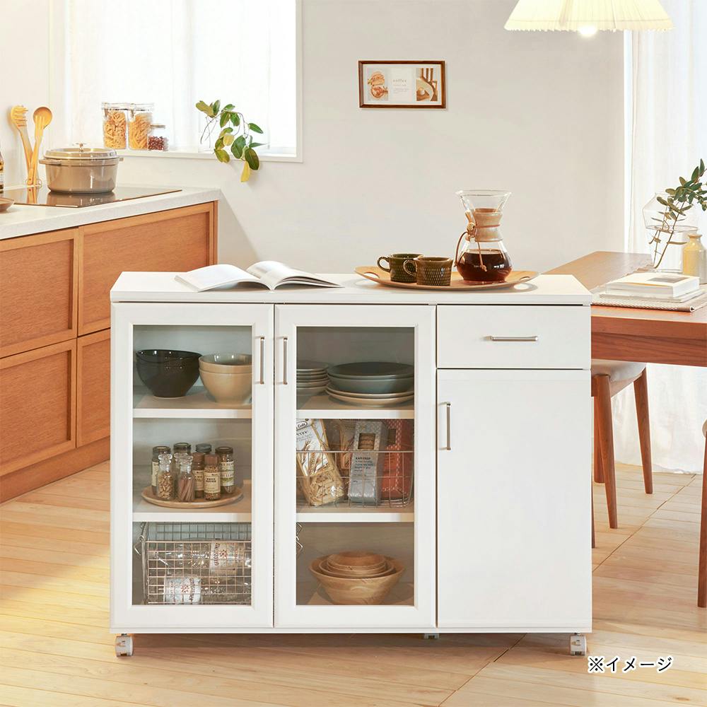 ホワイトとシルバーで清潔感のあるシンプルなキッチン収納 カウンターワゴンタイプ
