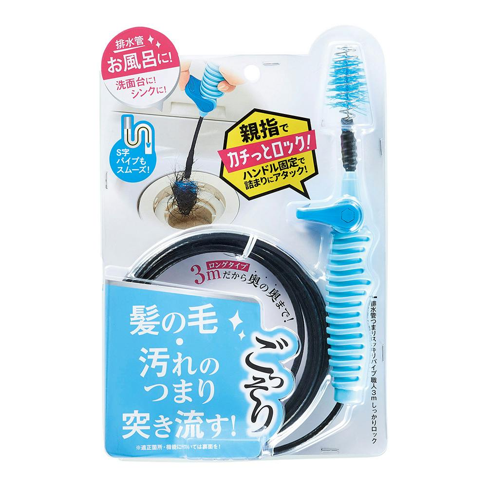 3mのロングワイヤーが、排水管の奥の奥まで届く!ロック式のグリップから、ワイヤーの出し入れ自由自在!
