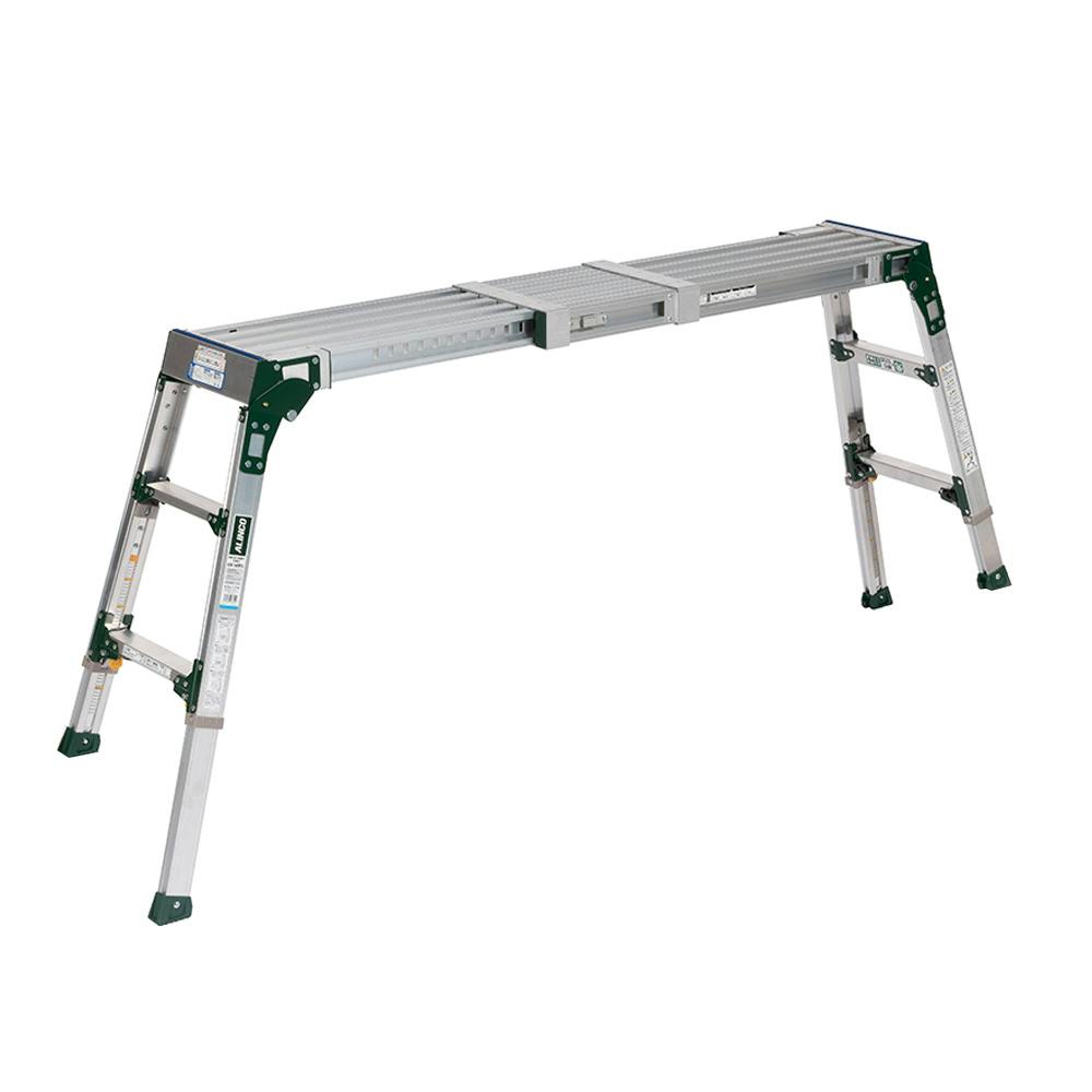 ●作業スペースに合わせて調整できる伸縮天板・伸縮脚付足場台●脚伸縮幅:257mm●伸縮脚は6mmピッチで調節可能