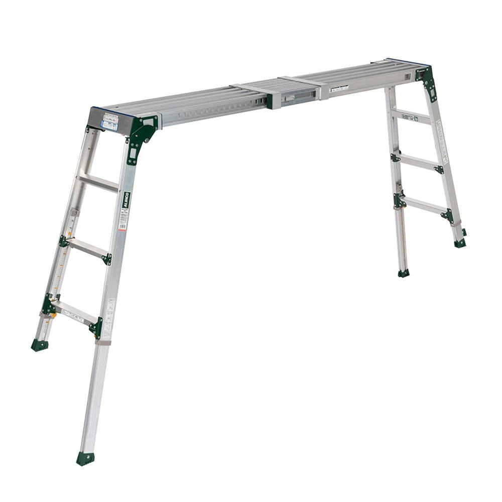 ●作業スペースに合わせて調整できる伸縮天板・伸縮脚付足場台●脚伸縮幅:395mm●伸縮脚は6mmピッチで調節可能