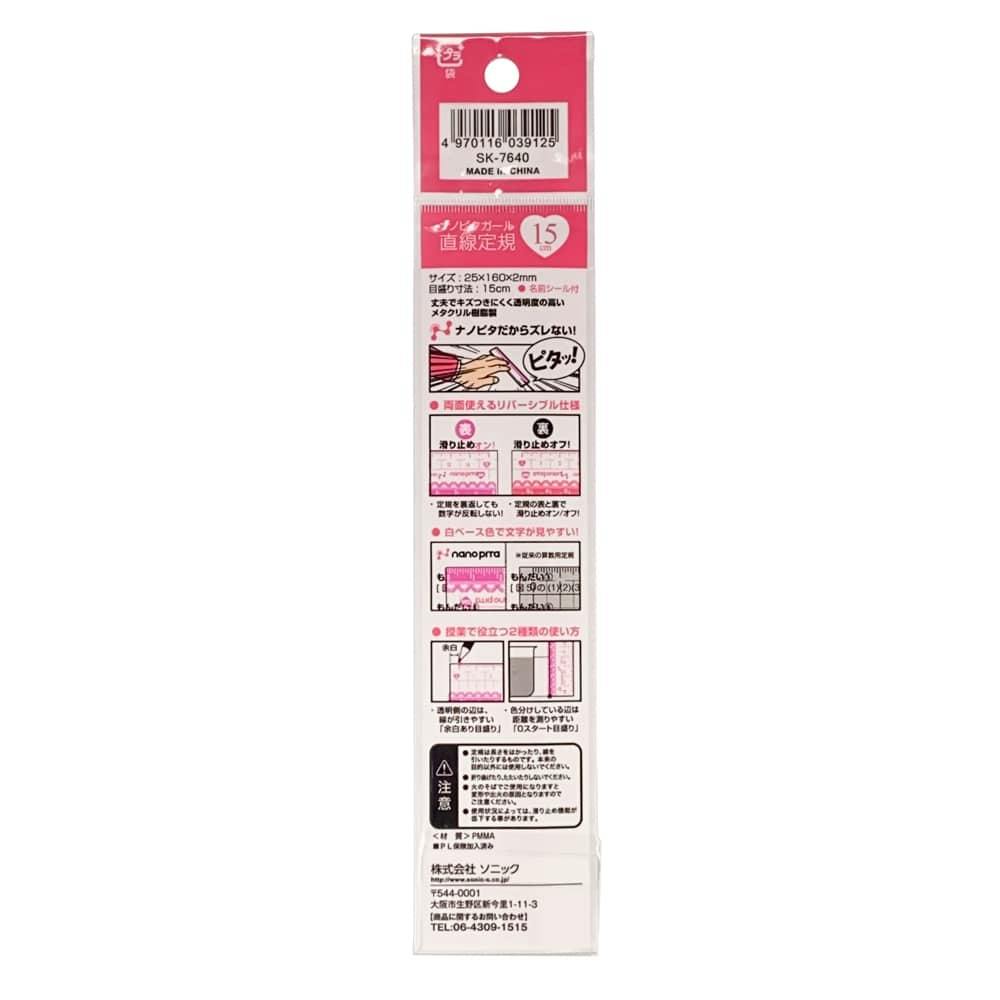 ナノピタ ガール 直線定規 15cm リバーシブル