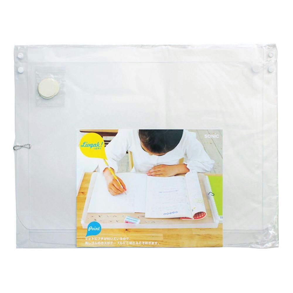 マットにフチが付いているので消しゴムカスが散らばらない!ダイニングテーブルを汚すことなく、お勉強できます。