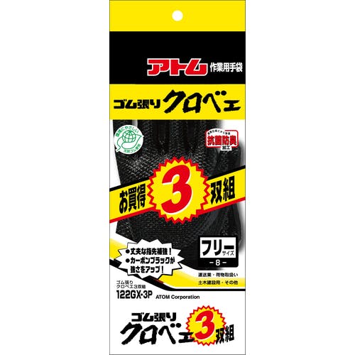 【CAINZ-DASH】アトム ゴム張り クロベエ 3双組 122GX-3P【別送品】
