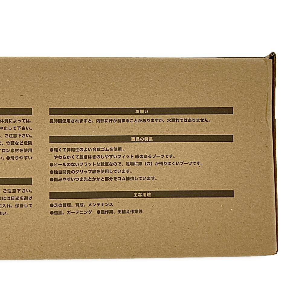 ●独自開発のグリップ底により、より高いグリップ力を発揮します。●ヒールのないフラットな靴底なので、足場に跡(穴)が残りにくい長靴です。●防水加工により、濡れた足場でも安心してご使用いただけます。