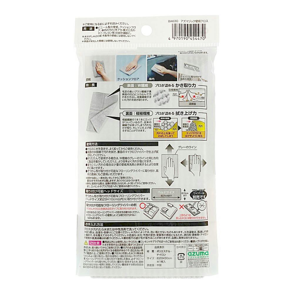 ●凹凸のある壁紙の汚れ落としに、裏返して仕上げ拭きに●プロが認めるかき取り力●表面/W繊維●グレー/ブラシ繊維●白/吸着繊維●水だけで壁紙の汚れ(手アカ・黒ズミ汚れ・ヤニ・クレヨン等)をしっかり落とします●プロが認める拭き上げ力●表面/極細繊維