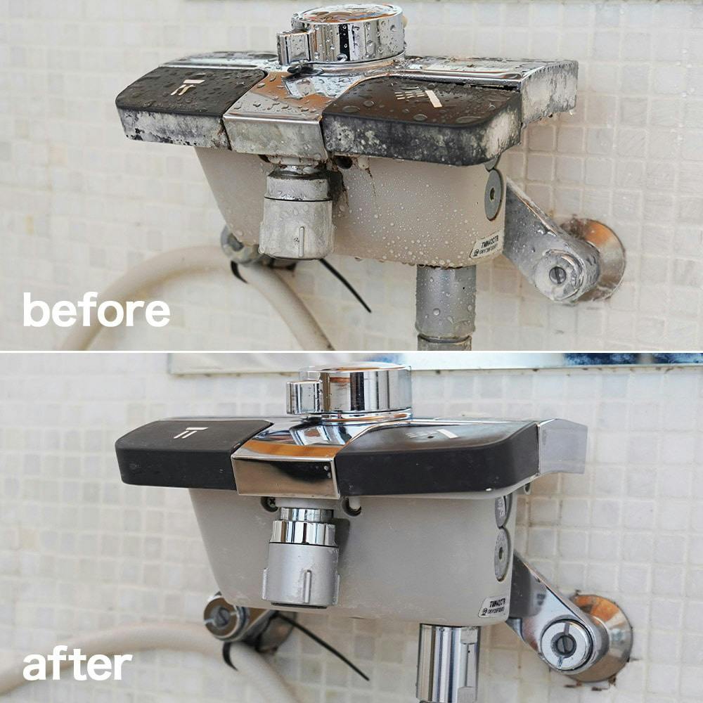 浴室の蛇口・シャワーヘッド・ドア・壁・床・浴槽等の頑固な水アカ落としに