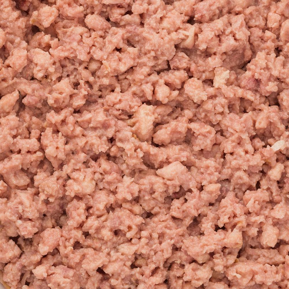 牛肉と鶏ささみ、鶏胸肉、鶏レバーをやわらかいミンチに仕上げました。与えやすい65gの小容量で、小型犬にうれしい1日食べきりサイズです。素材の美味しさと香りをそのまま閉じ込めました。食品用のお肉を使用し、新潟の自社工場で製造しています。