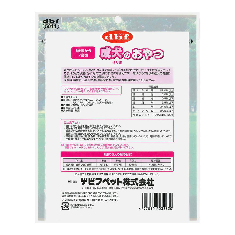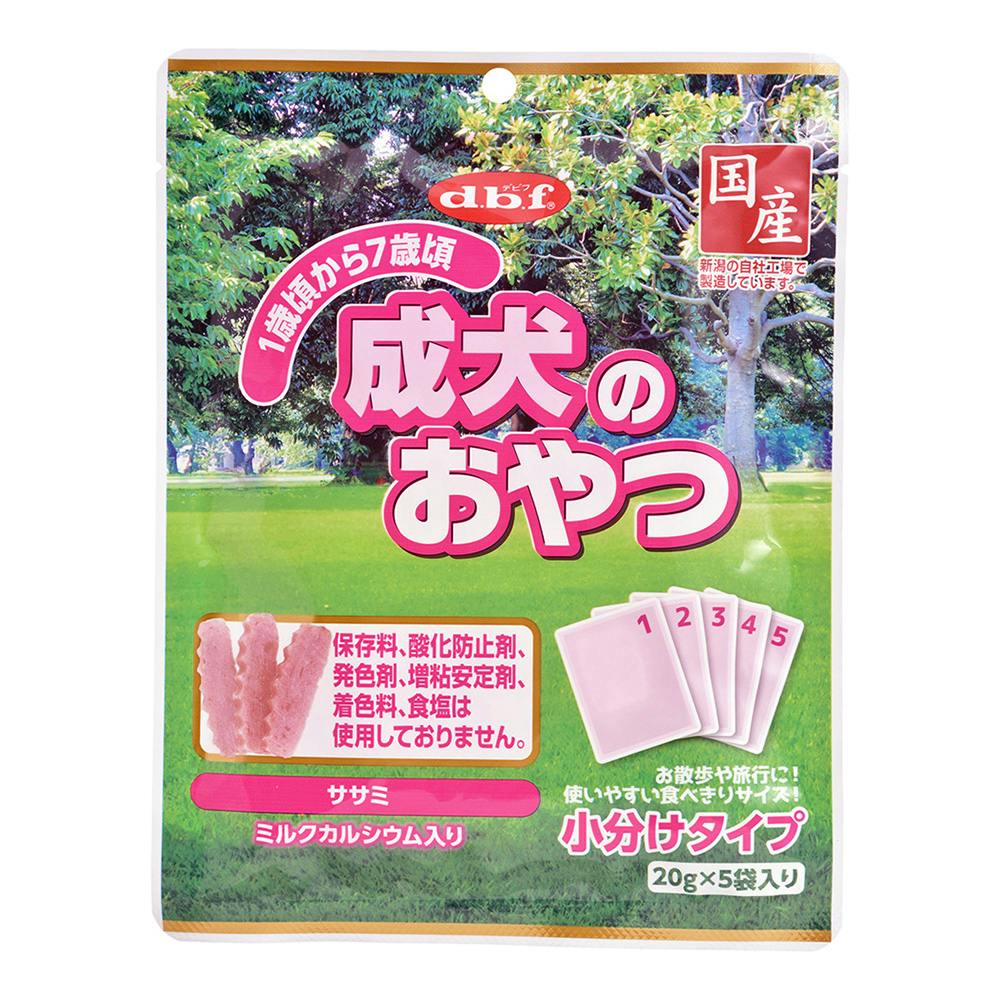 鶏ささみをベースに、好みのサイズに簡単にちぎれるやわらかさに仕上げた成犬用スナックです。20gの少量パックなので、持ち歩きにも便利です。1歳頃から7歳頃の成犬の健康に配慮して、ミルクカルシウムを配合しました。