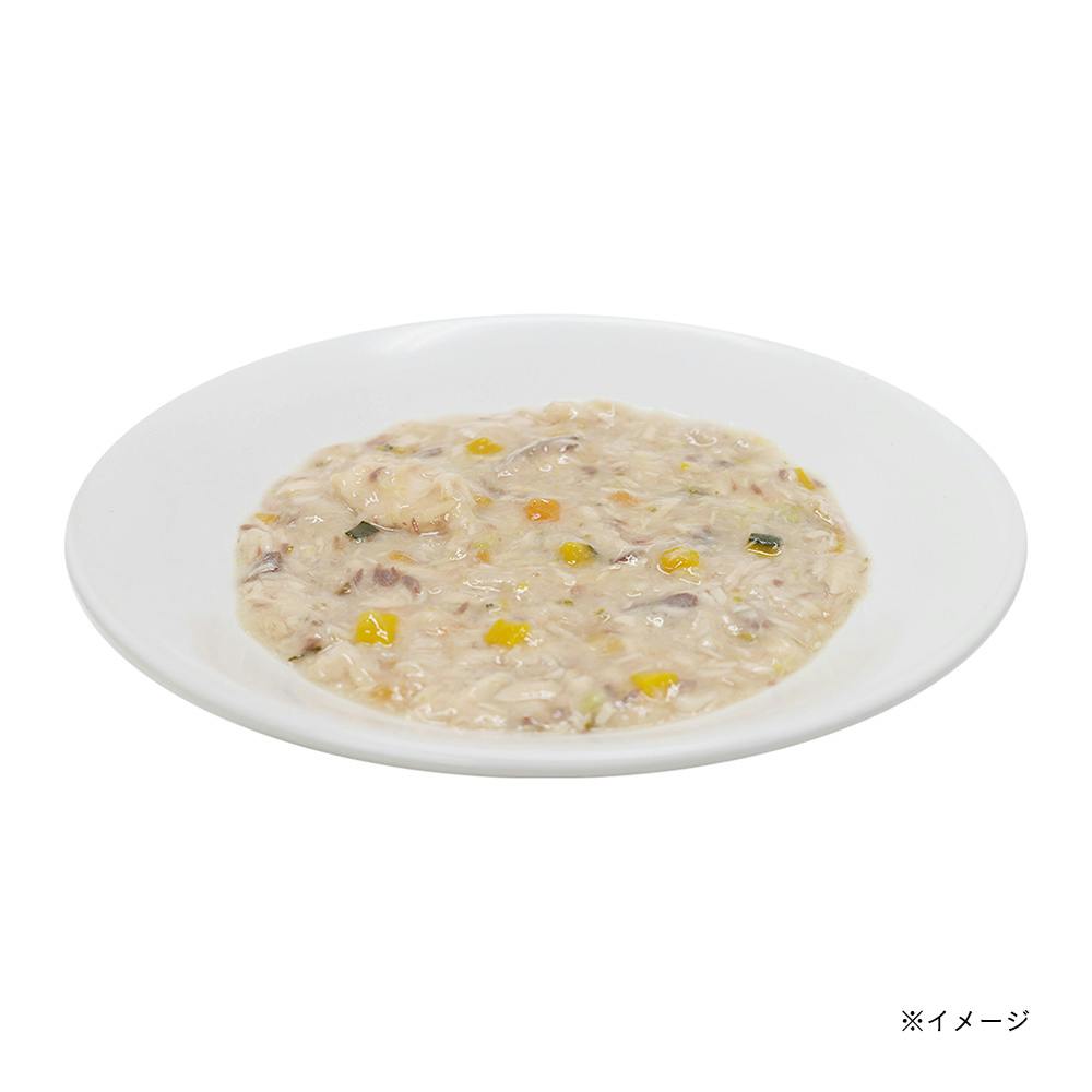 まぐろをフレーク状にほぐし、緑黄色野菜を加え、食べやすいとろみタイプに仕上げました。