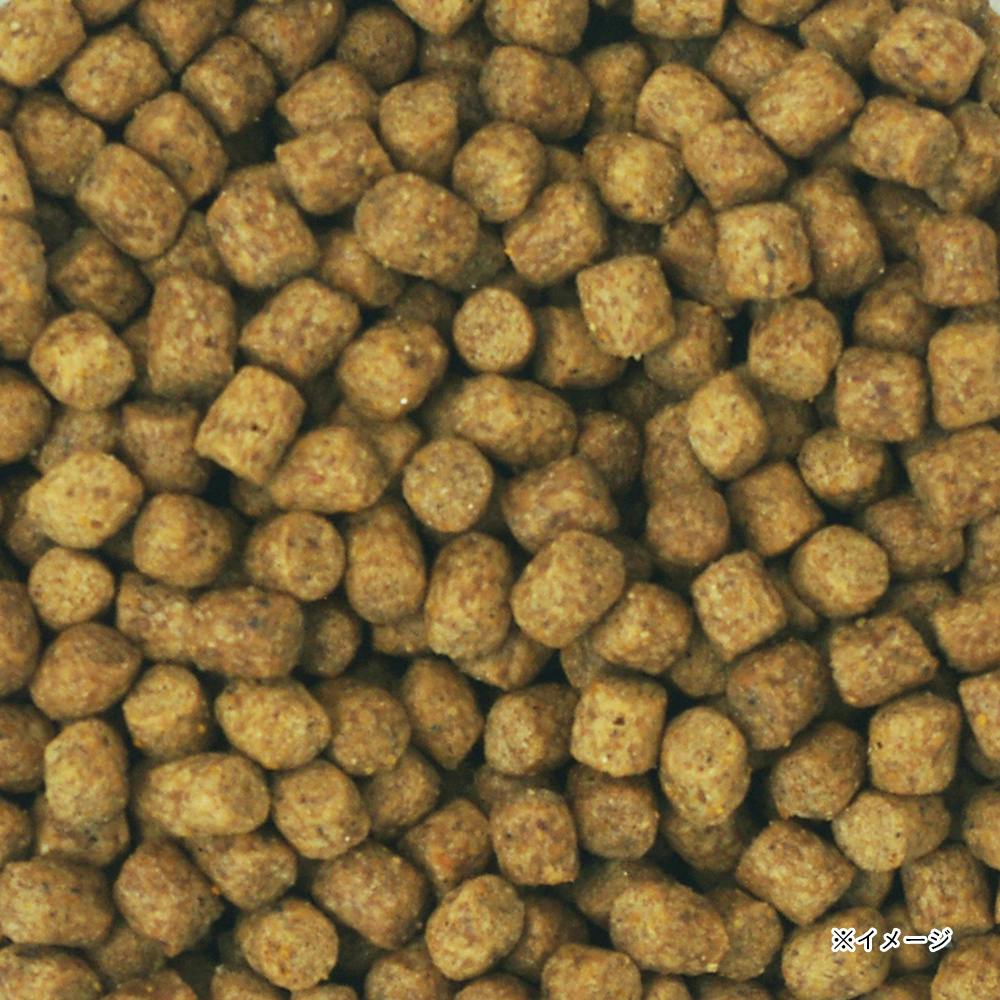 肉類(鶏肉、チキンミール)、小麦粉、米糠、コーングルテンフィード、米粉、コーングルテンミール、ビートパルプ、牛脂、ビール酵母、酵母エキス、精製魚油(DHA・EPA源)、植物抽出発酵エキス、オリゴ糖、パン酵母(セレン源)、コラーゲン、グルコサミン