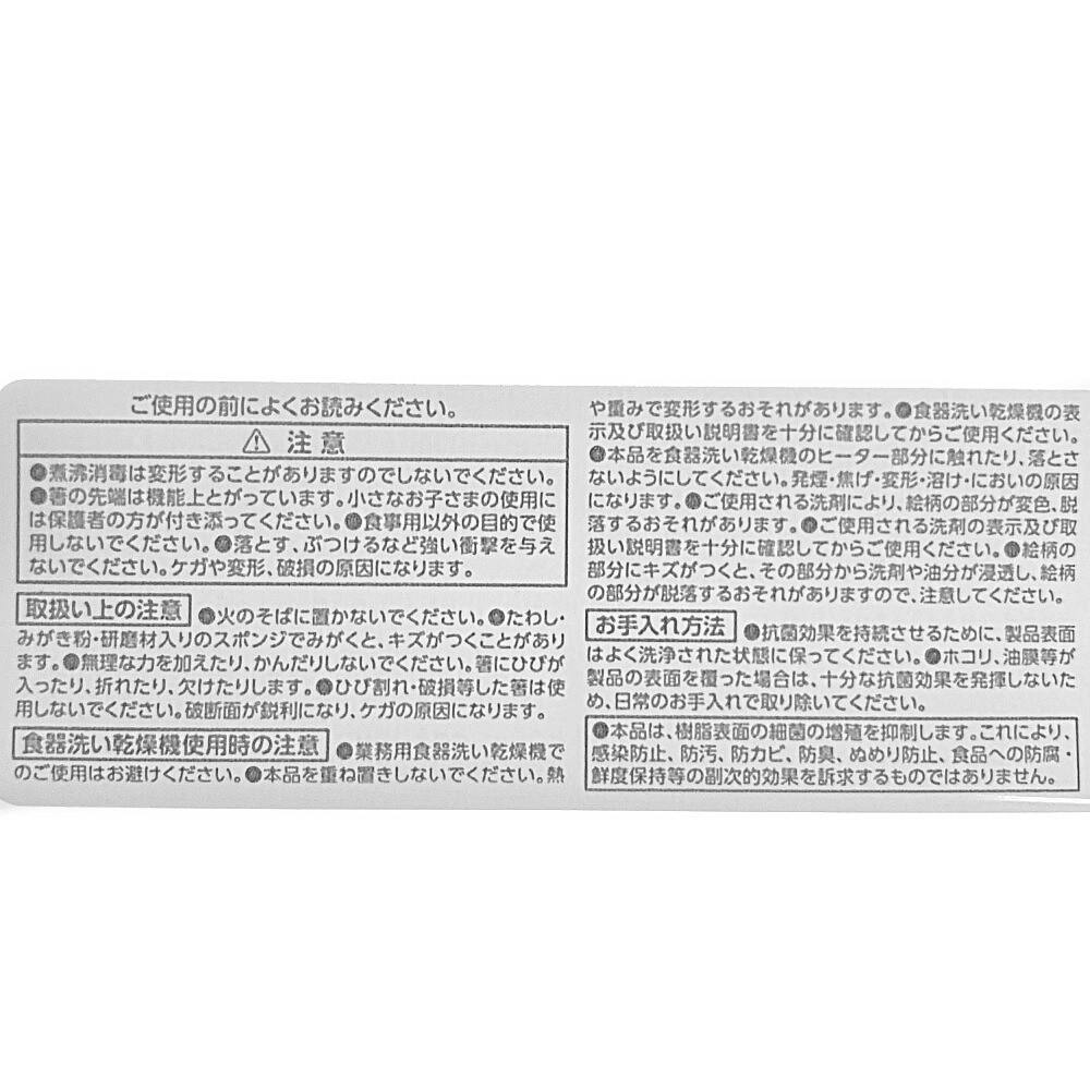 ●火のそばに置かないでください。●たわし・みがき粉・研磨剤入りのスポンジでみがくと、キズがつくことがあります。●無理な力を加えたり・かんだりしないでください。箸にひびが入ったり、折れたり、欠けたりします。など