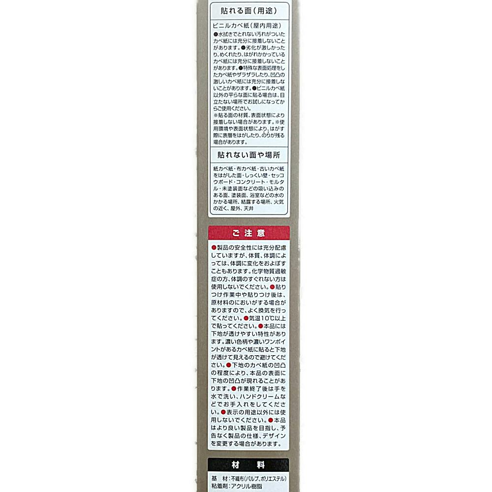 ●広げるだけでそのまま貼れます。●汚れても水拭きすることができます。●ビニルカベ紙の上に貼れます。●裏紙がないので廃棄するゴミを減らす環境配慮型製品です。●のり残りせずにはがせます。